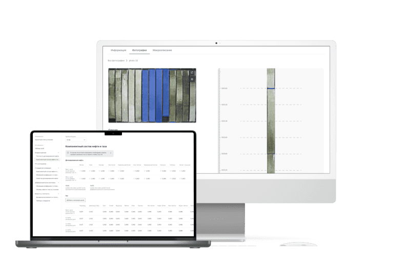 Данные по образцам керна и пластовых флюидов (нефть, газ, вода), которые были измерены на испытательных установках. Далее автоматически с помощью расчетных алгоритмов определяются значения других необходимых параметров образцов.